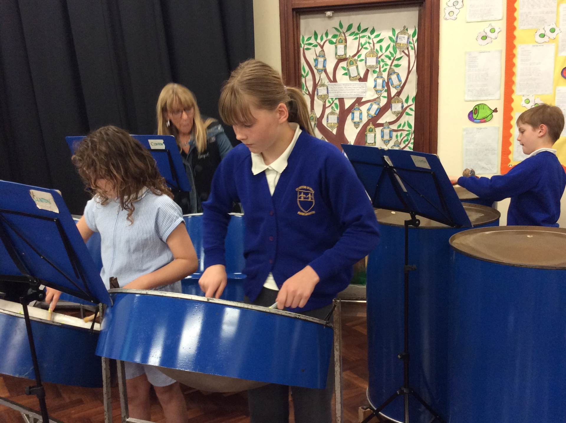 These are learnt as ‘shared music lessons’ and children are taught by Diana, through the Steel Pan Academy.